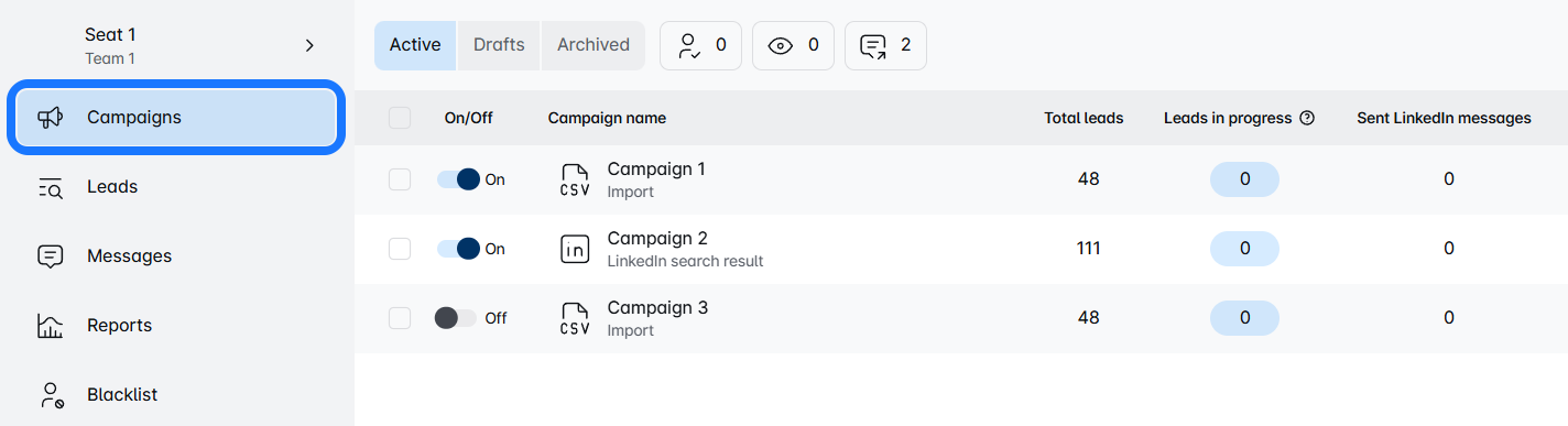 Start by logging into your Sales Marketeer account and heading over to the Campaign Dashboard.