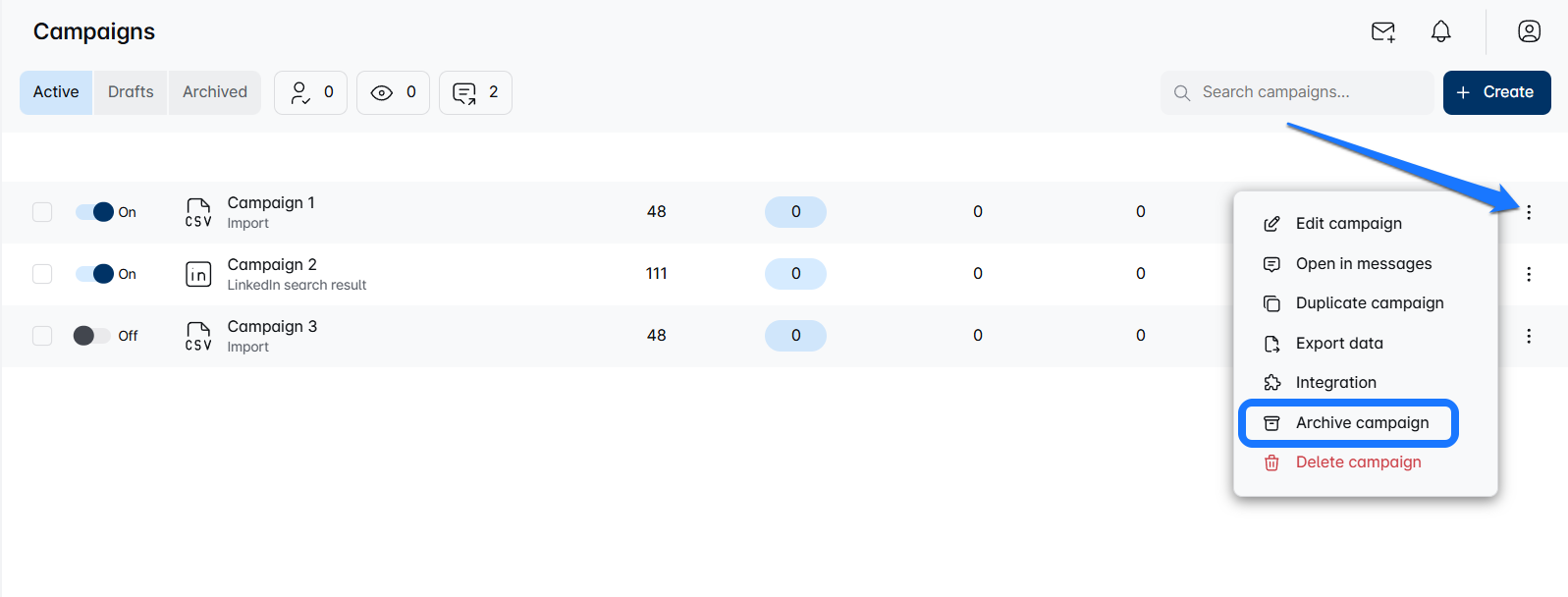 Simply switch to the 'Archive Campaigns' view. Youโll now see all your neatly tucked-away campaigns.