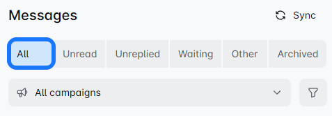 Once you connect your LinkedIn profile to the Sales Marketeer, this filter shows your non-campaign-based messages. ❗ Messages sent before connecting your account won't appear here.